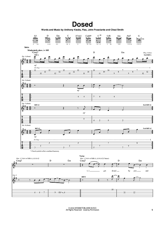 Digital Sheet Music for Dosed by Flea, John Frusciante, Anthony Kiedis, Red Hot Chili Peppers scored for Guitar Tab; id:370302