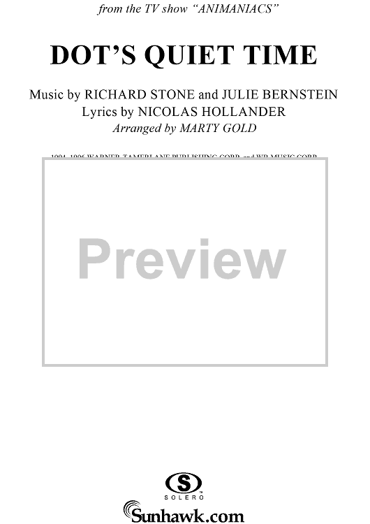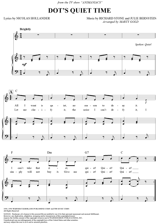 Digital Sheet Music for Dot's Quiet Time by Marty Gold, Julie Bernstein, Richard Stone, Nicholas Hollander scored for Piano/Vocal/Chords; id:119965