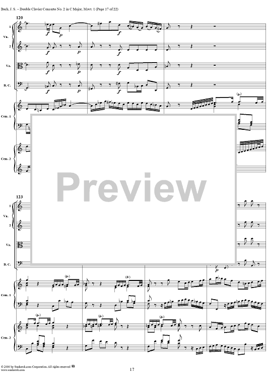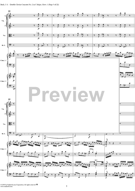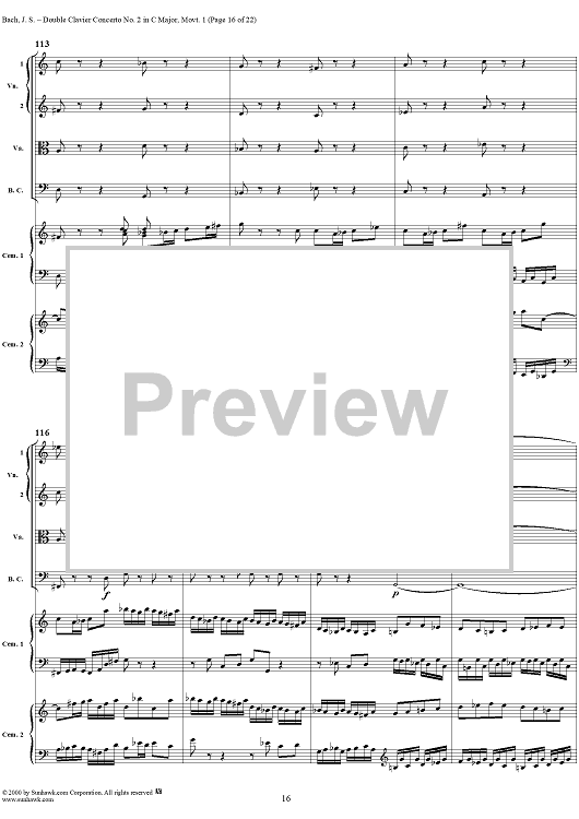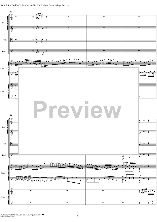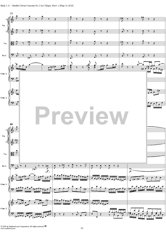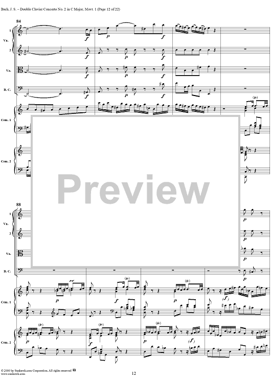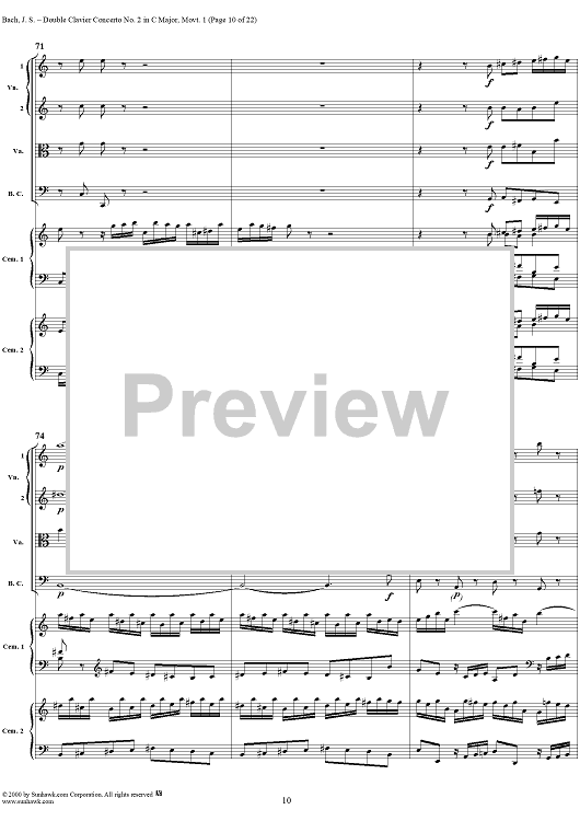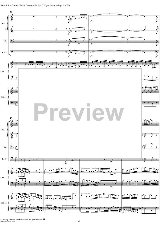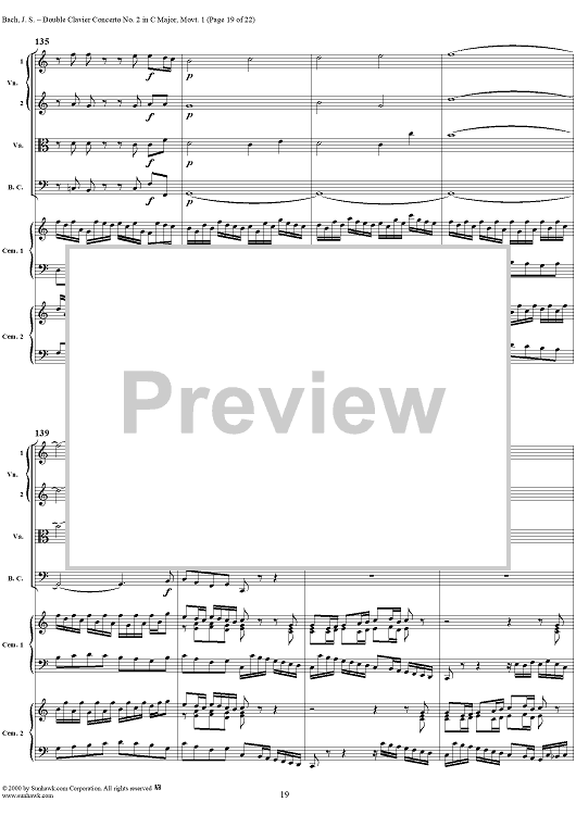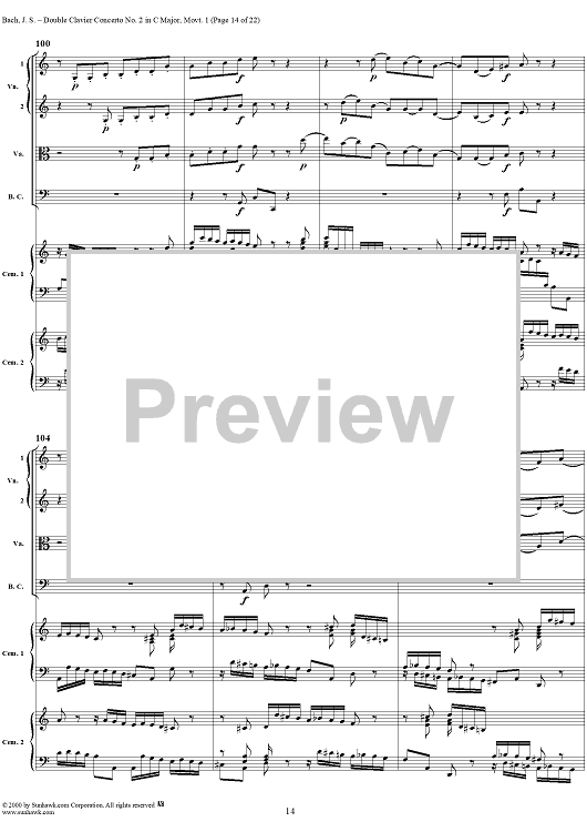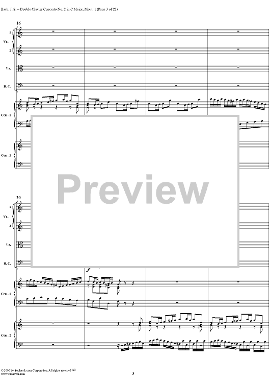 Digital Sheet Music for Double Clavier Concerto No. 2 in C Major, Movement 1 (BWV 1061) - Score by Johann Sebastian Bach scored for 2 Pianos/Strings; id:241218
