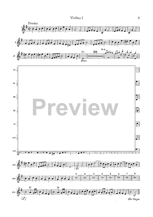 Digital Sheet Music for Double Concerto for Recorder and Flute in E minor - Violin 1 by , Georg Philipp Telemann scored for String Orchestra; id:458079