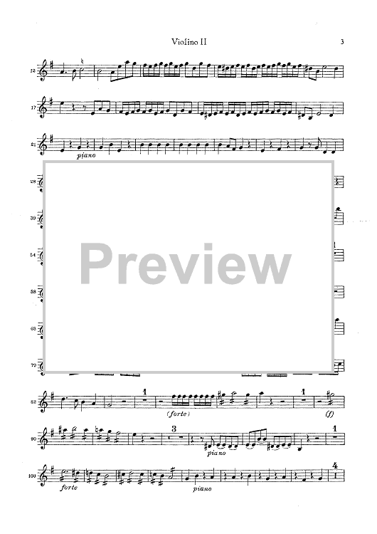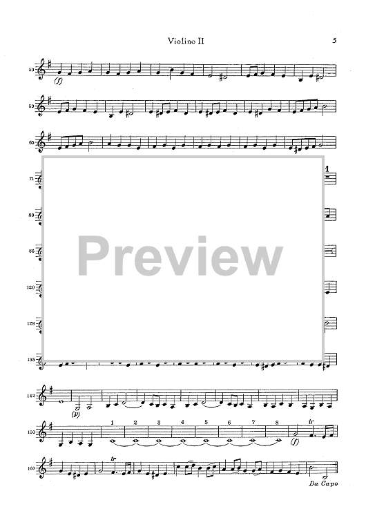 Digital Sheet Music for Double Concerto for Recorder and Flute in E minor - Violin 2 by , Georg Philipp Telemann scored for String Orchestra; id:458080