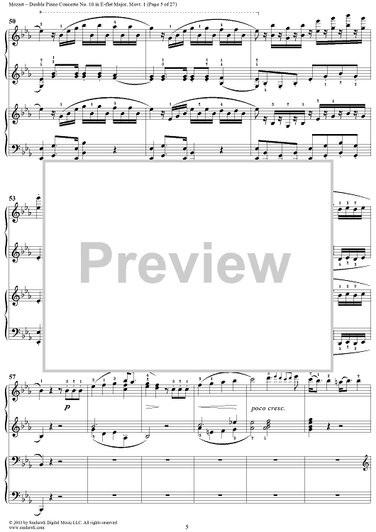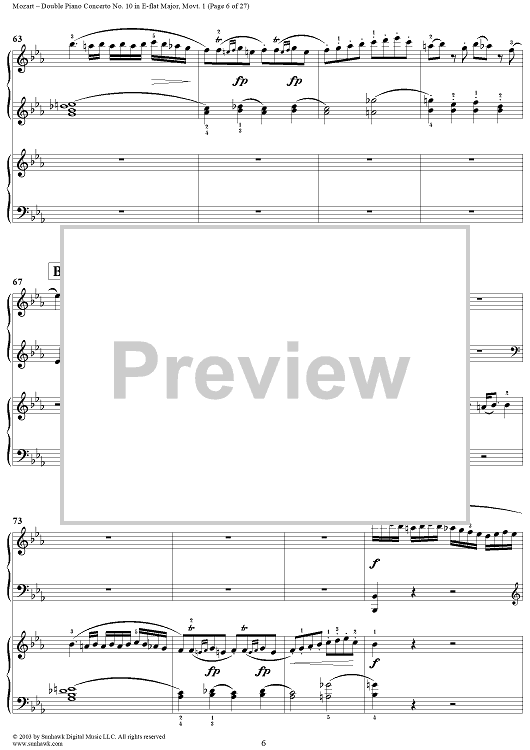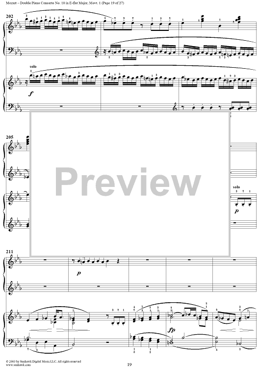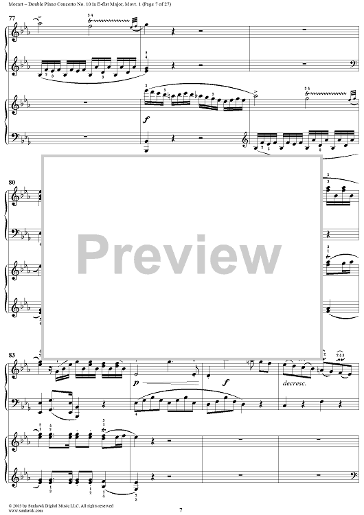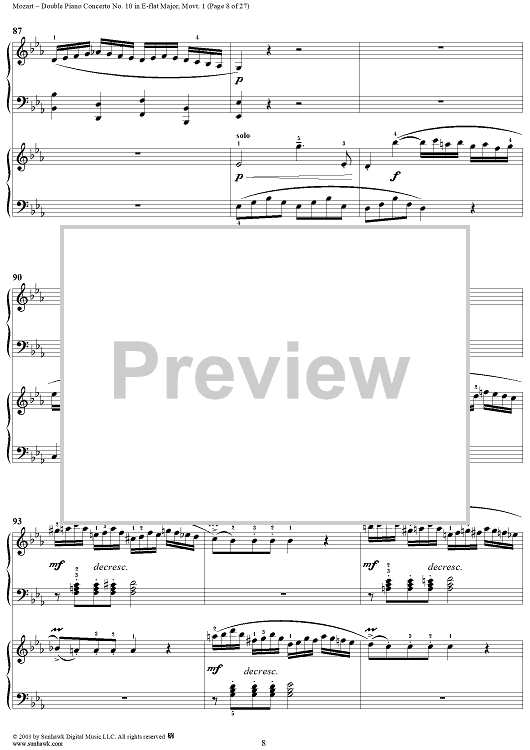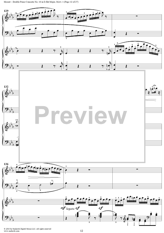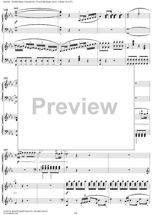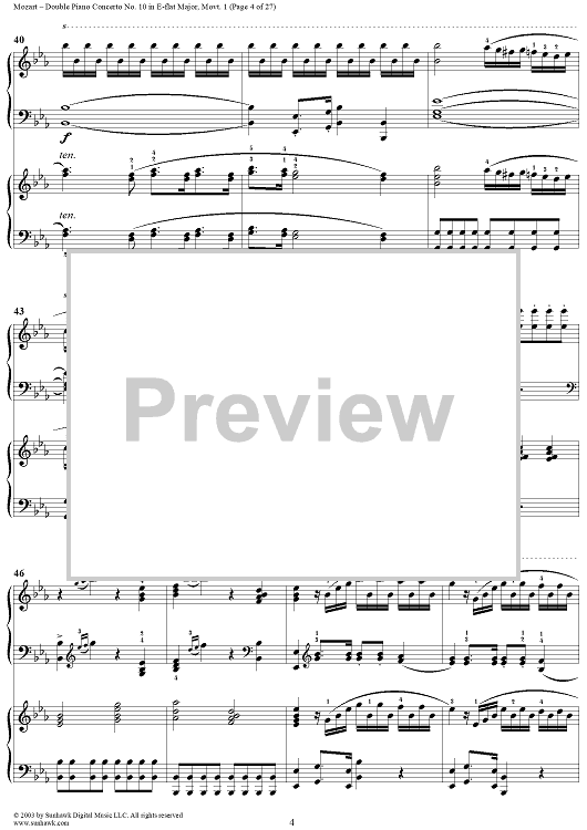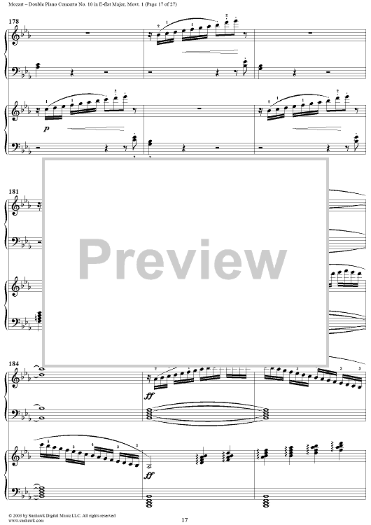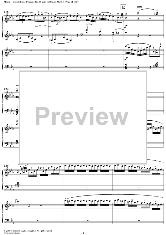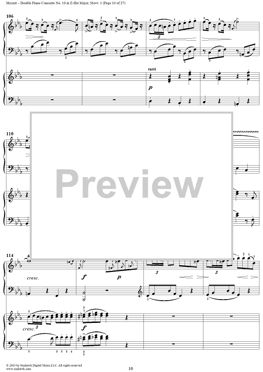 "Double Piano Concerto No. 10 in E-flat Major, K316a (K365), Movement 1" Sheet Music by Wolfgang Amadeus Mozart