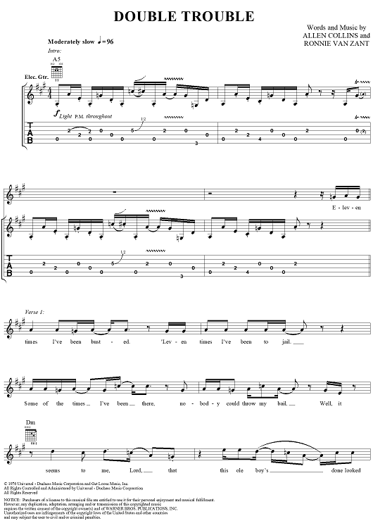 "Double Trouble" Sheet Music by Lynyrd Skynyrd