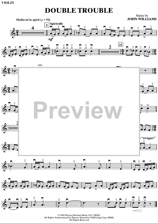Digital Sheet Music for Double Trouble by John Williams scored for Violin/Piano; id:498039