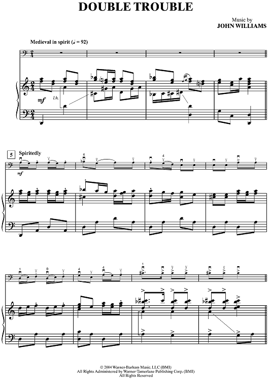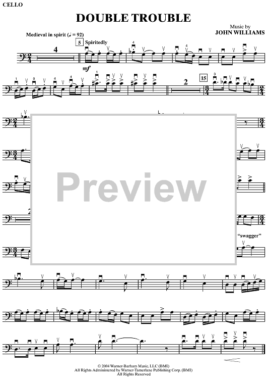 Digital Sheet Music for Double Trouble by John Williams scored for Cello/Piano; id:498052