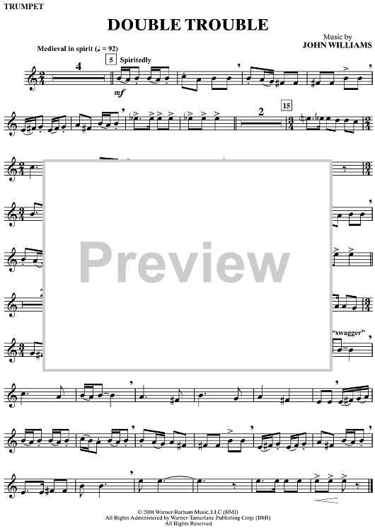 Digital Sheet Music for Double Trouble by John Williams scored for Trumpet/Piano; id:498118