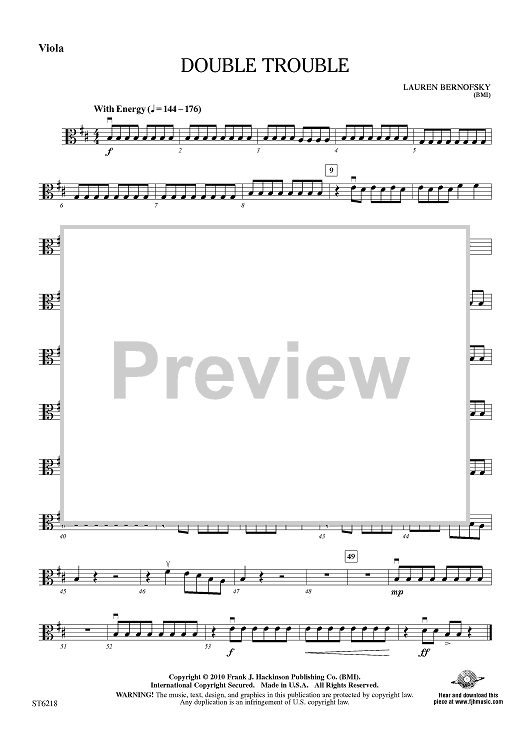 Digital Sheet Music for Double Trouble - Viola by Lauren Bernofsky scored for Orchestra; id:411623