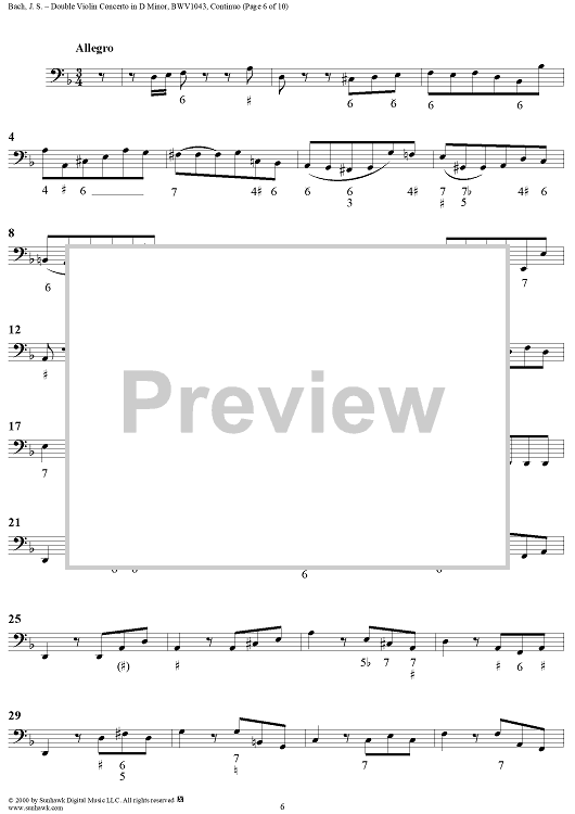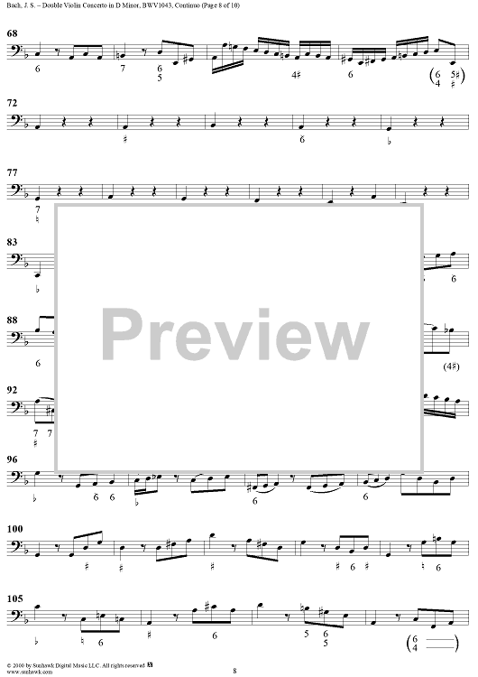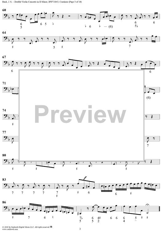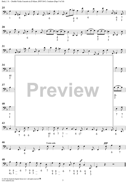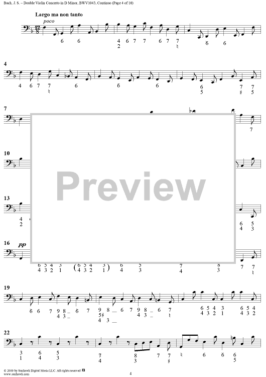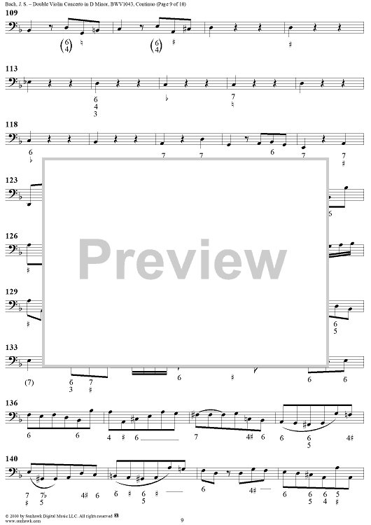 "Double Violin Concerto - Continuo" Sheet Music by Johann Sebastian Bach