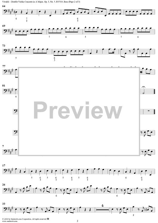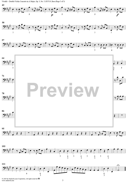 Digital Sheet Music for Double Violin Concerto in A Major - from "L'Estro Armonico" - Op. 3/5 (RV519) - Bass by Antonio Vivaldi scored for String Orchestra; id:265108