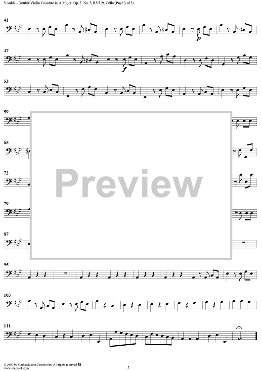Digital Sheet Music for Double Violin Concerto in A Major - from "L'Estro Armonico" - Op. 3/5 (RV519) - Cello by Antonio Vivaldi scored for String Orchestra; id:265100