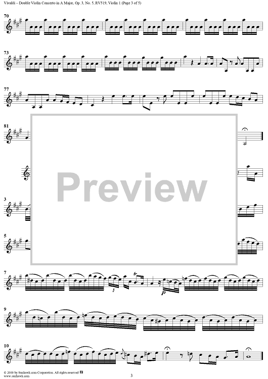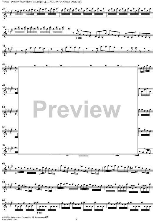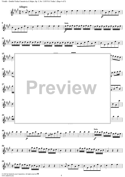 Digital Sheet Music for Double Violin Concerto in A Major - from "L'Estro Armonico" - Op. 3/5 (RV519) - Violin 1 by Antonio Vivaldi scored for String Orchestra; id:265103
