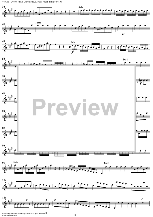 Digital Sheet Music for Double Violin Concerto in A Major - from "L'Estro Armonico" - Op. 3/5 (RV519) - Violin 2 by Antonio Vivaldi scored for String Orchestra; id:265109