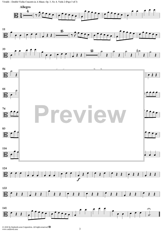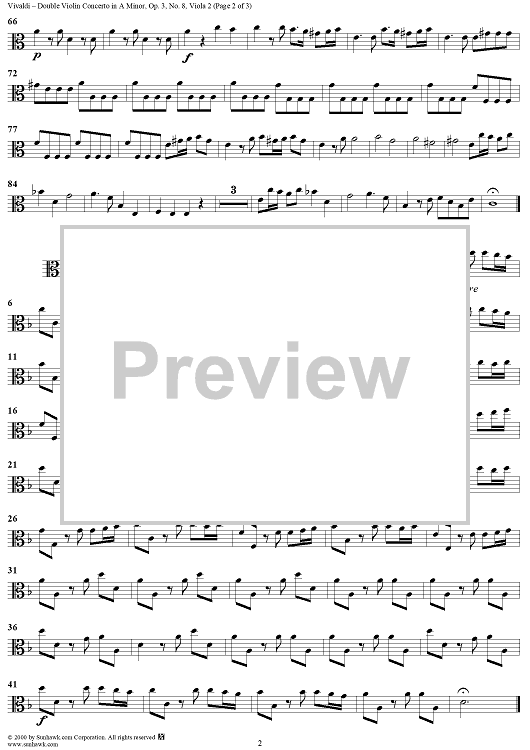 Digital Sheet Music for Double Violin Concerto in A Minor - from "L'Estro Armonico" - Op. 3/8 (RV522) - Viola 2 by Antonio Vivaldi scored for String Orchestra; id:265146