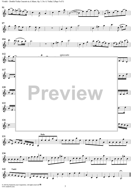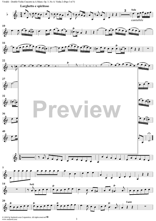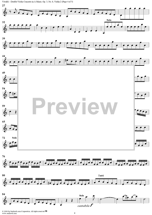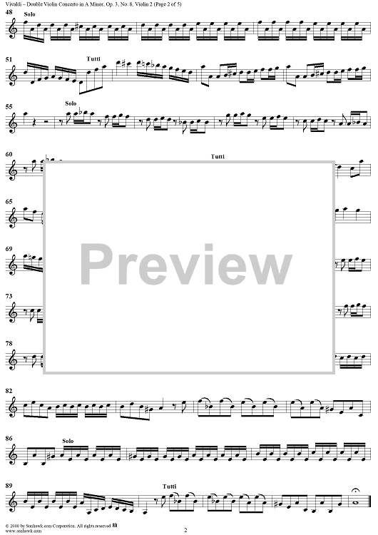 Digital Sheet Music for Double Violin Concerto in A Minor - from "L'Estro Armonico" - Op. 3/8 (RV522) - Violin 2 by Antonio Vivaldi scored for String Orchestra; id:265138