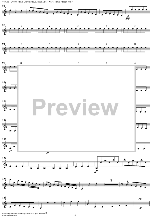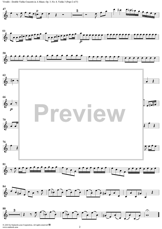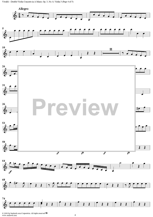 Digital Sheet Music for Double Violin Concerto in A Minor - from "L'Estro Armonico" - Op. 3/8 (RV522) - Violin 3 by Antonio Vivaldi scored for String Orchestra; id:265142