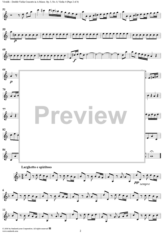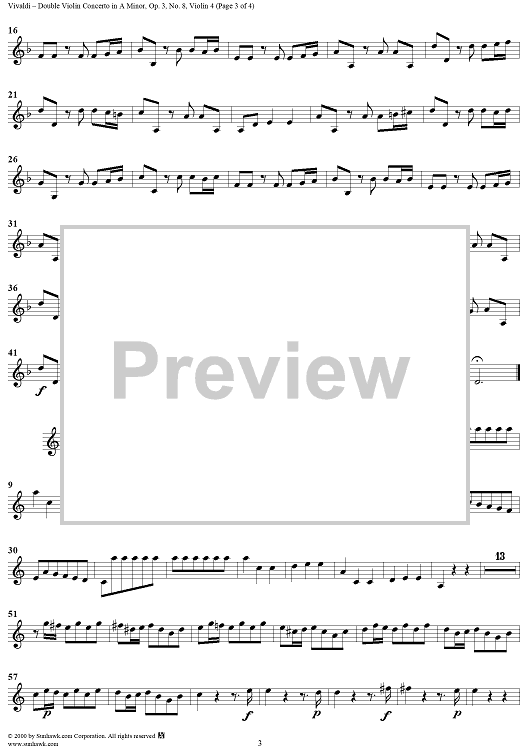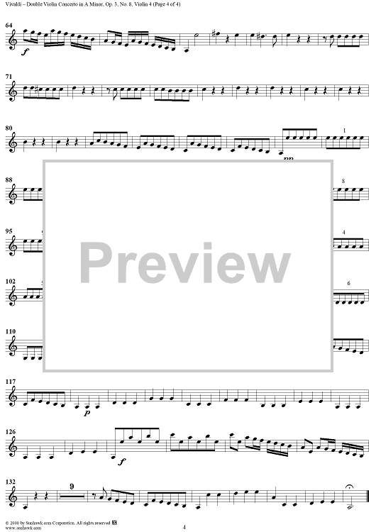 Digital Sheet Music for Double Violin Concerto in A Minor - from "L'Estro Armonico" - Op. 3/8 (RV522) - Violin 4 by Antonio Vivaldi scored for String Orchestra; id:265143