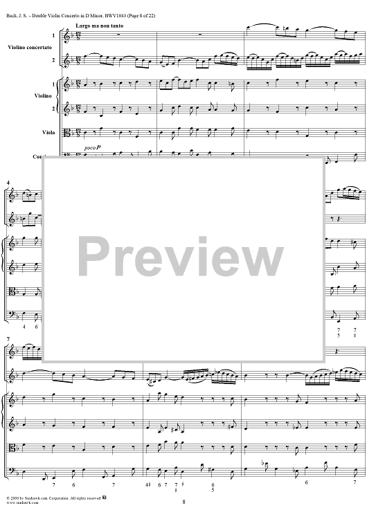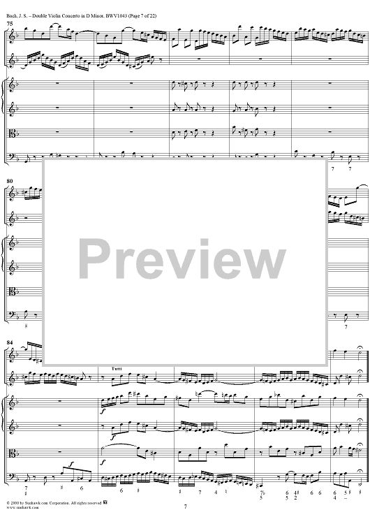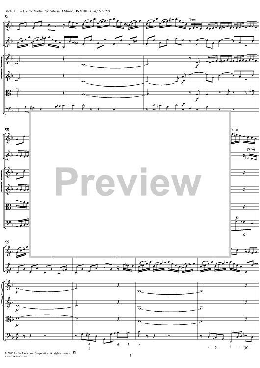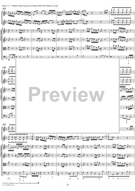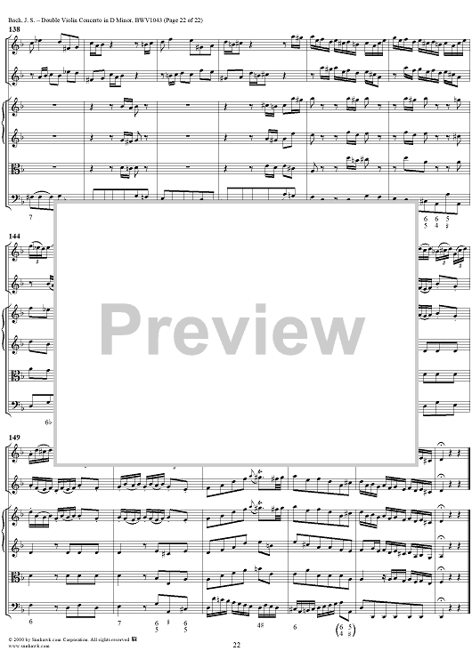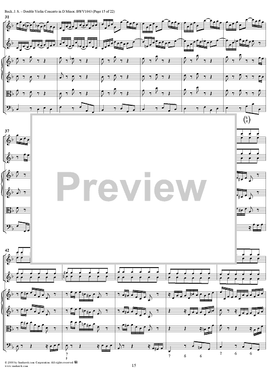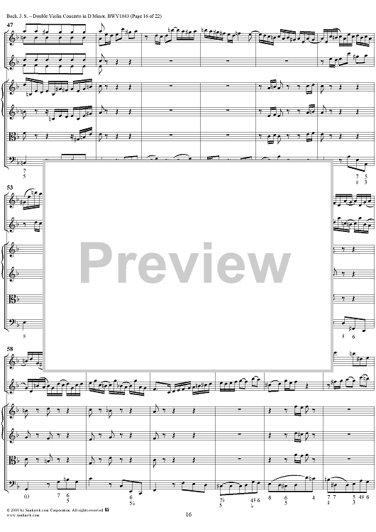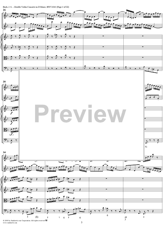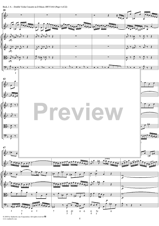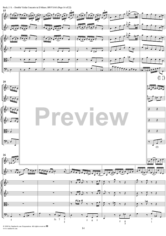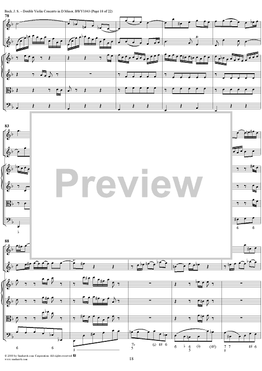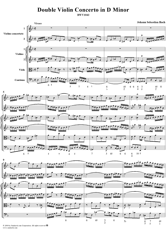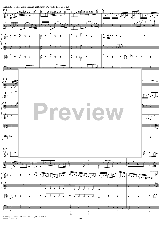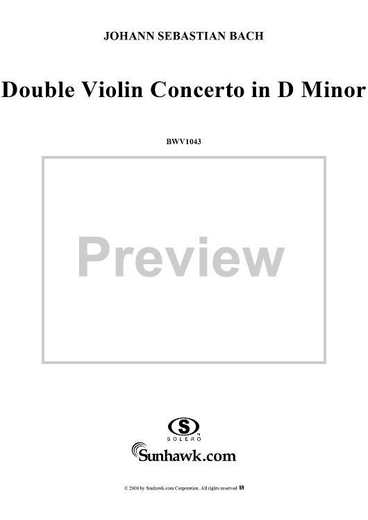 "Double Violin Concerto - Score" Sheet Music by Johann Sebastian Bach