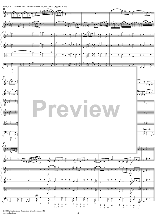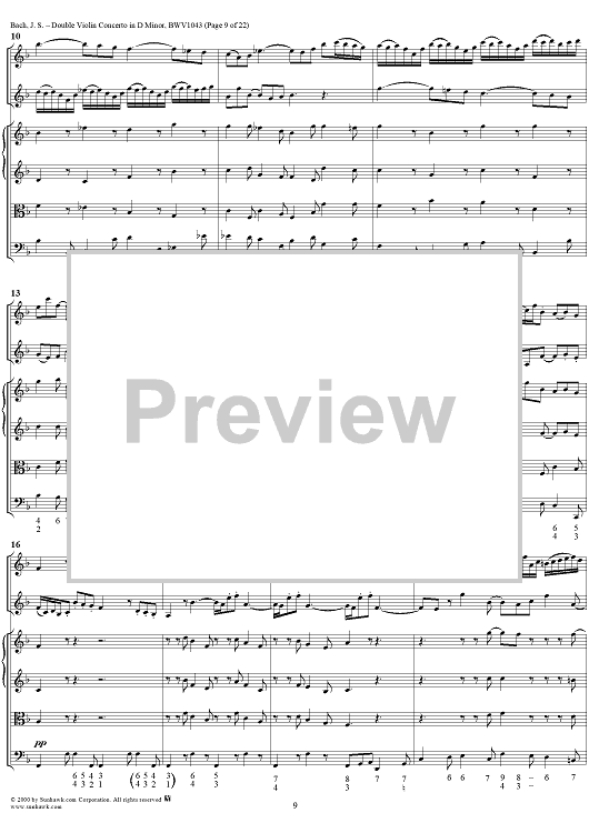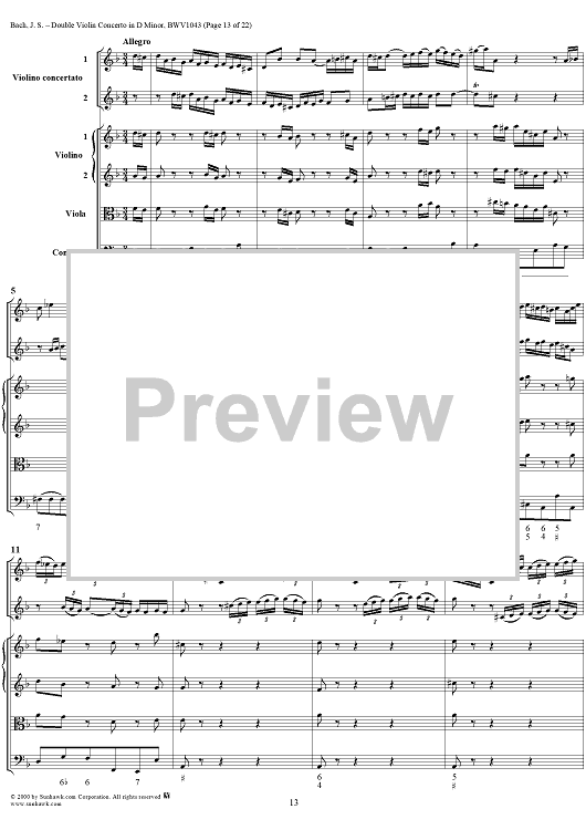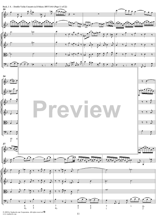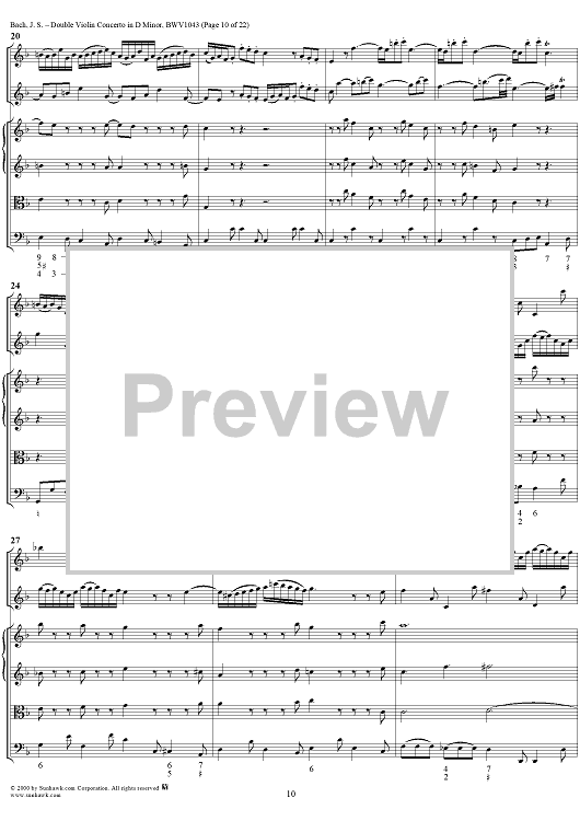 Digital Sheet Music for Double Violin Concerto - Score by Johann Sebastian Bach scored for 2 Violins/String Orchestra; id:236468