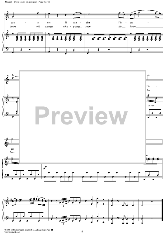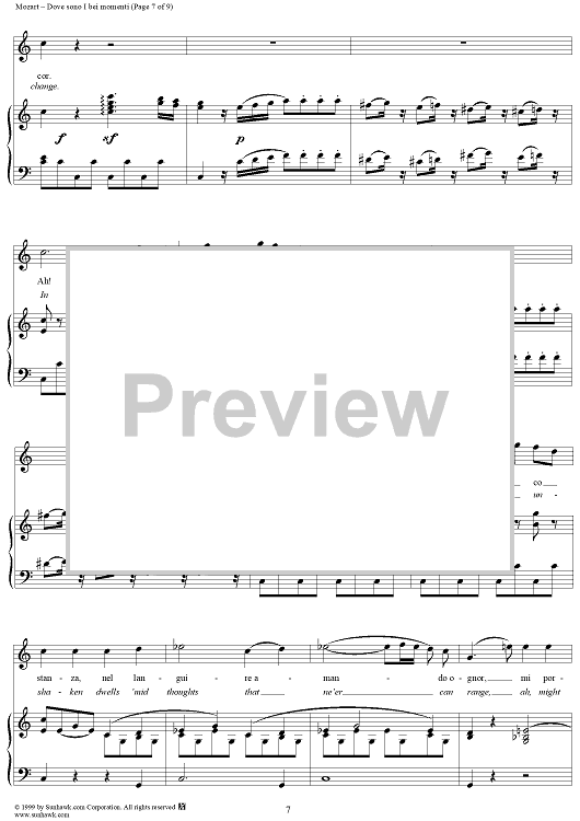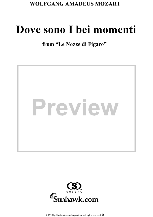 "Dove sono I bei momenti - From "Le Nozze di Figaro"" Sheet Music by Wolfgang Amadeus Mozart