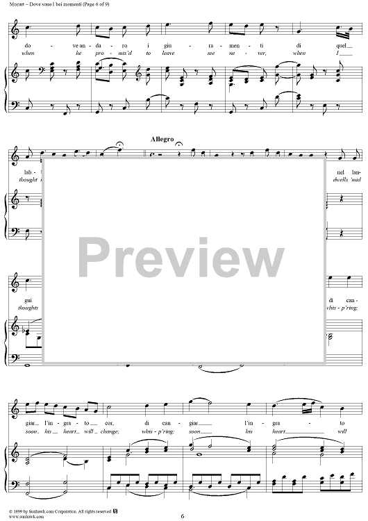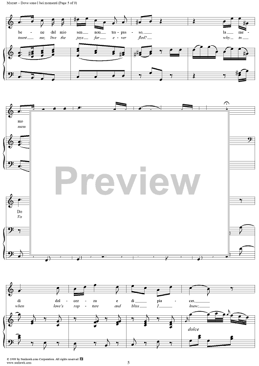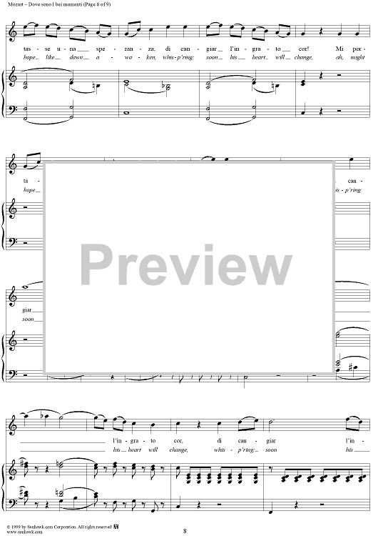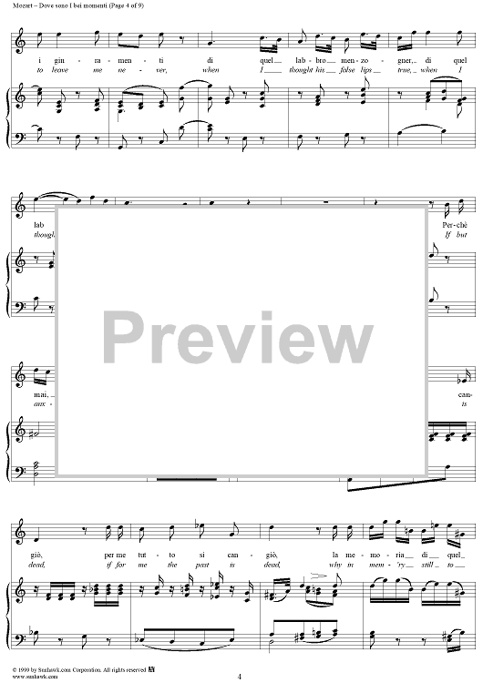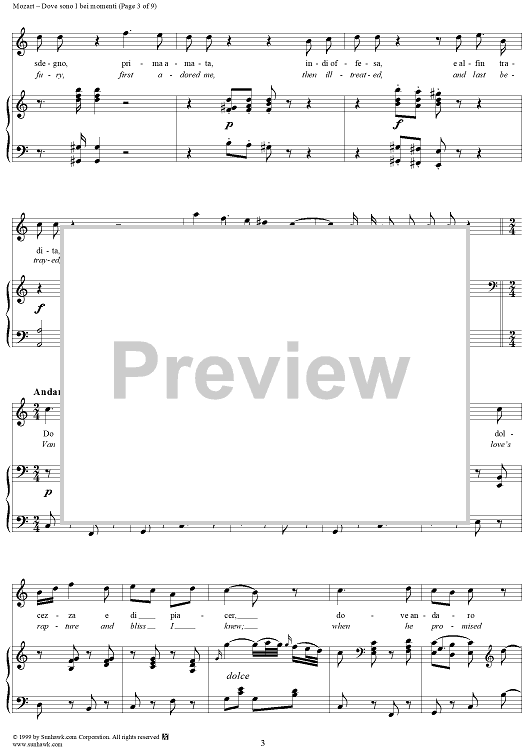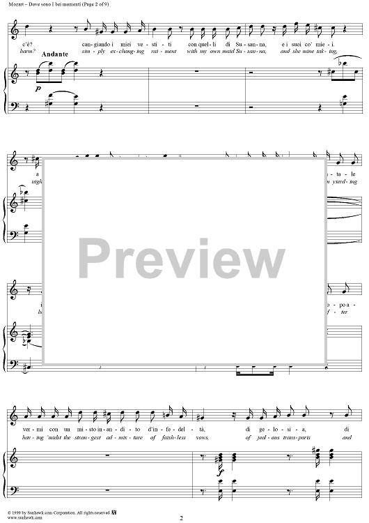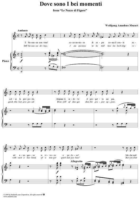 Digital Sheet Music for Dove sono I bei momenti - From "Le Nozze di Figaro" by Wolfgang Amadeus Mozart scored for Voice/Piano; id:254380