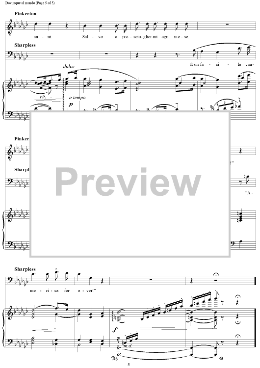 Digital Sheet Music for Dovunque al mundo - From "Madama Butterfly" by Giuseppe Giacosa, Giacomo Puccini scored for Voice and Piano; id:254509