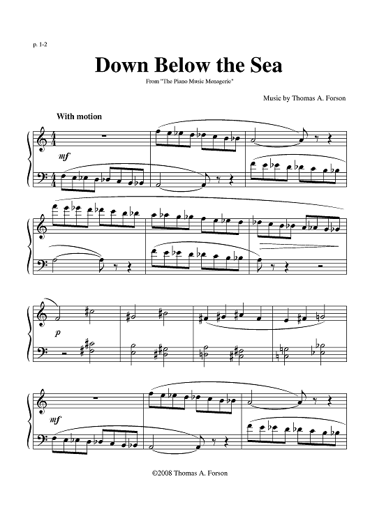 "Down Below the Sea" Sheet Music by Thomas A. Forson