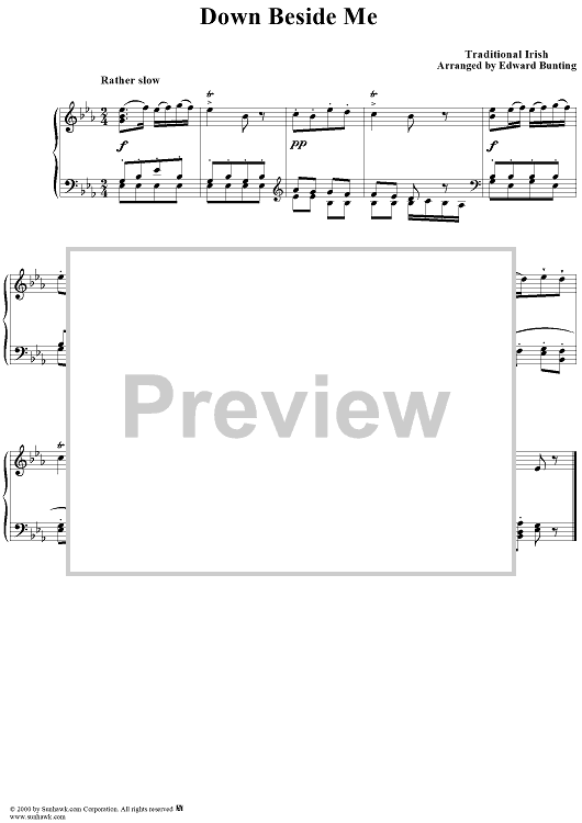 Digital Sheet Music for Down Beside Me by , Edward Bunting, Traditional scored for Piano Solo; id:234613
