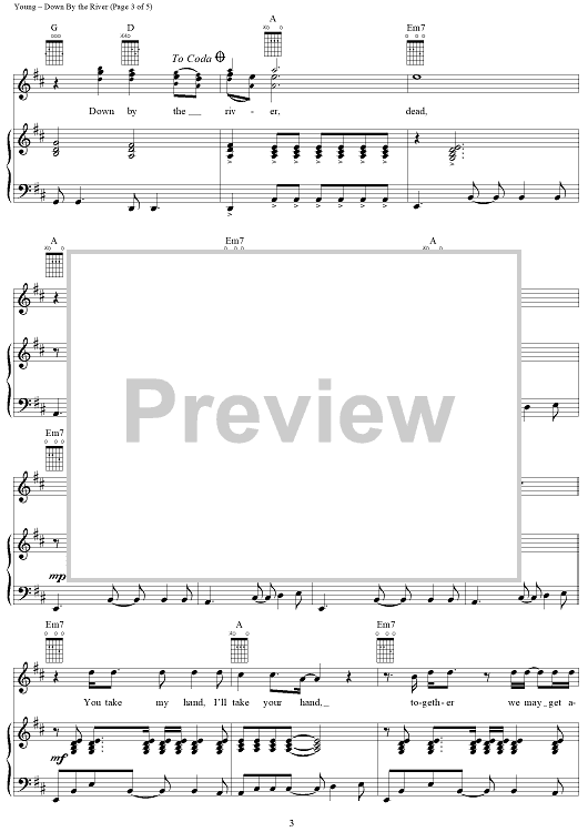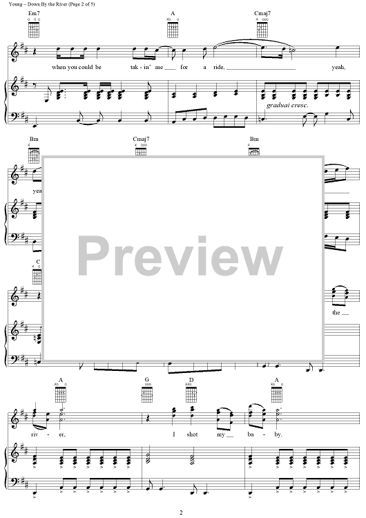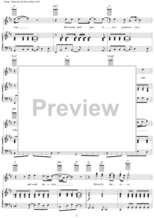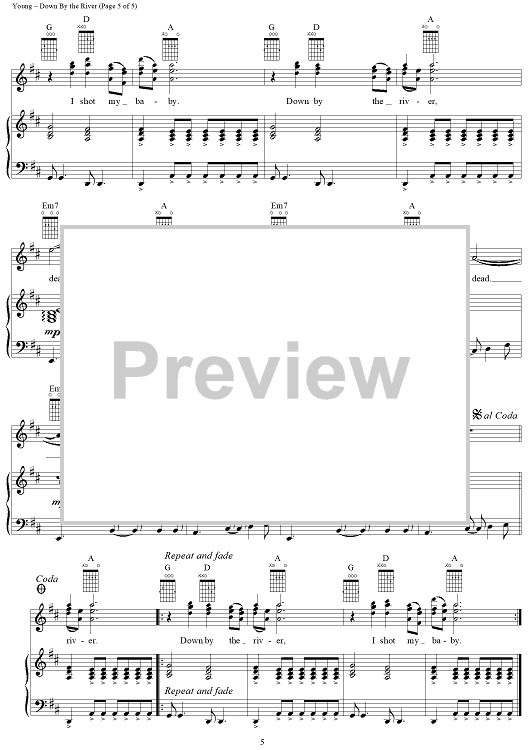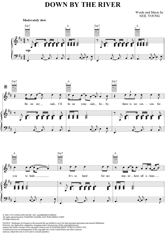 Digital Sheet Music for Down By the River by Neil Young scored for Piano/Vocal/Chords; id:262949