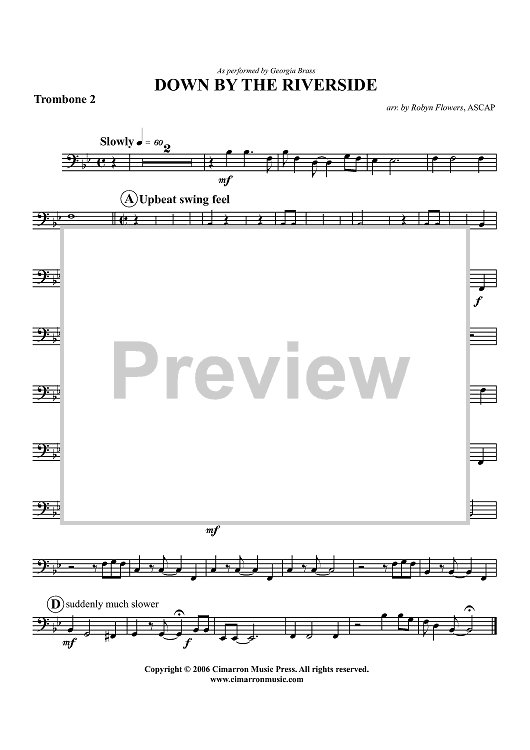 Digital Sheet Music for Down By the Riverside - Trombone 2 by Robyn Flowers, Georgia Brass scored for Brass Quartet; id:356508