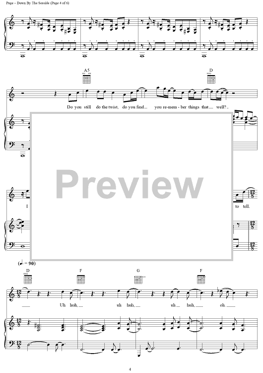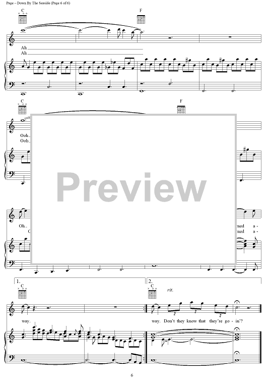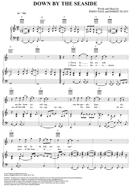 Digital Sheet Music for Down By the Seaside by Jimmy Page, Led Zeppelin, Robert Plant scored for Piano/Vocal/Chords; id:119801