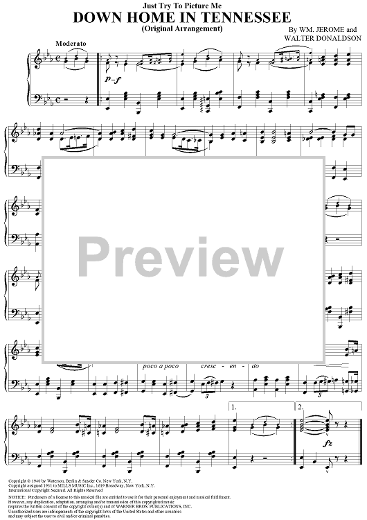 Digital Sheet Music for Down Home in Tennessee (Original Arrangement) by Fats Waller, Walter Donaldson, William Jerome scored for Piano Solo; id:316985