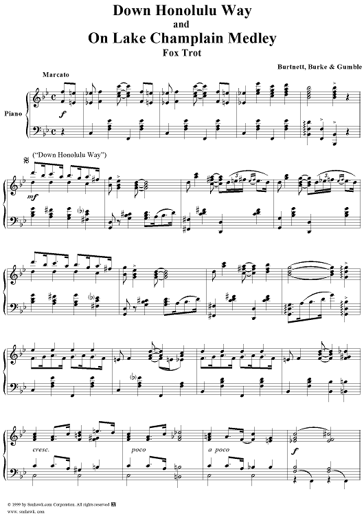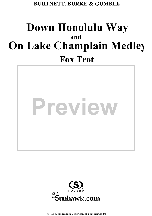 Digital Sheet Music for Down Honolulu Way / On Lake Champlain medley (Fox Trot) by Albert Gumble, Joe Burke, Earl Burtnett scored for Piano/Vocal; id:273594