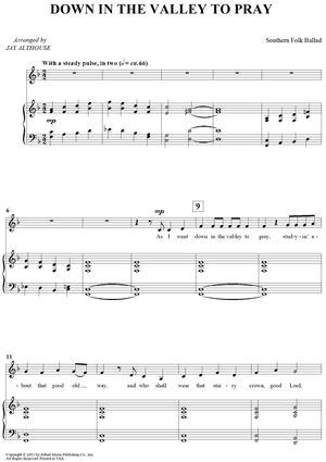 "Down In The Valley To Pray" Sheet Music by Southern Folk Tune
