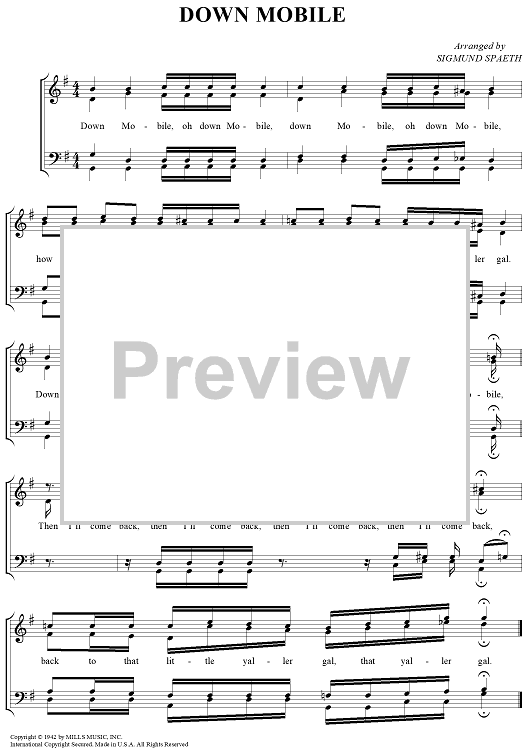 Digital Sheet Music for Down Mobile by Sigmund Spaeth, Traditional scored for Barbershop Quartet; id:240644