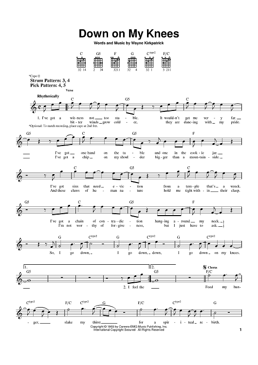 Digital Sheet Music for Down On My Knees by Susan Ashton, Wayne Kirkpatrick scored for Easy Guitar; id:398197