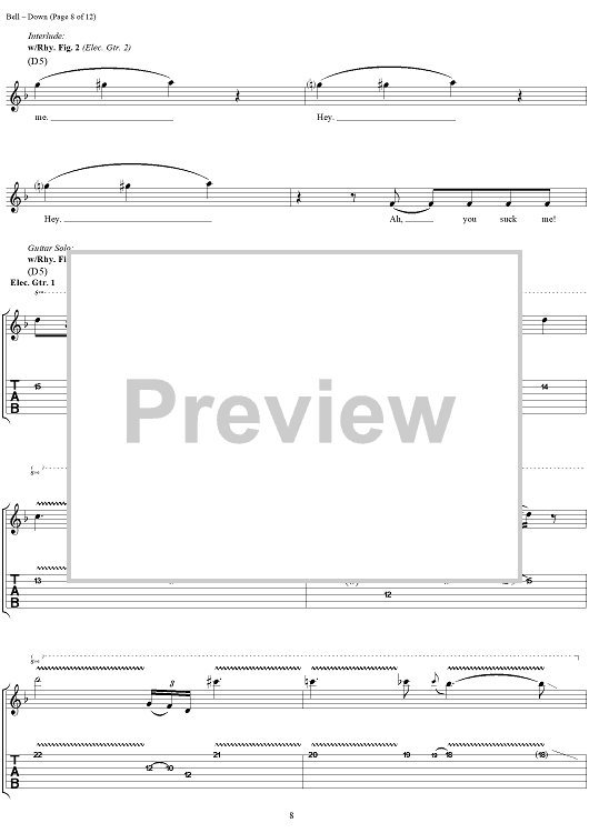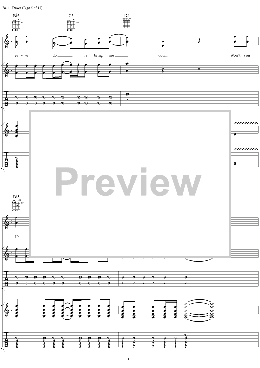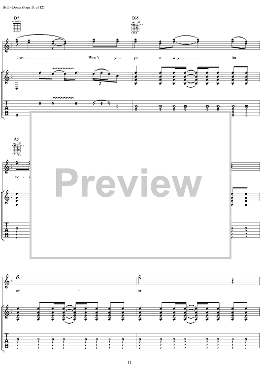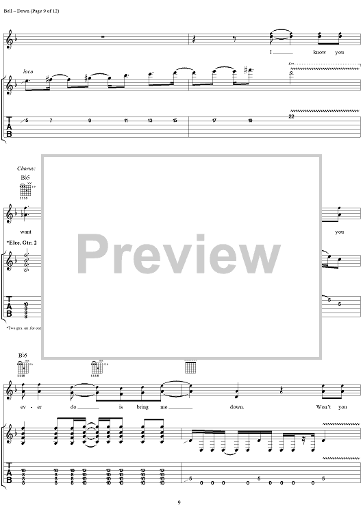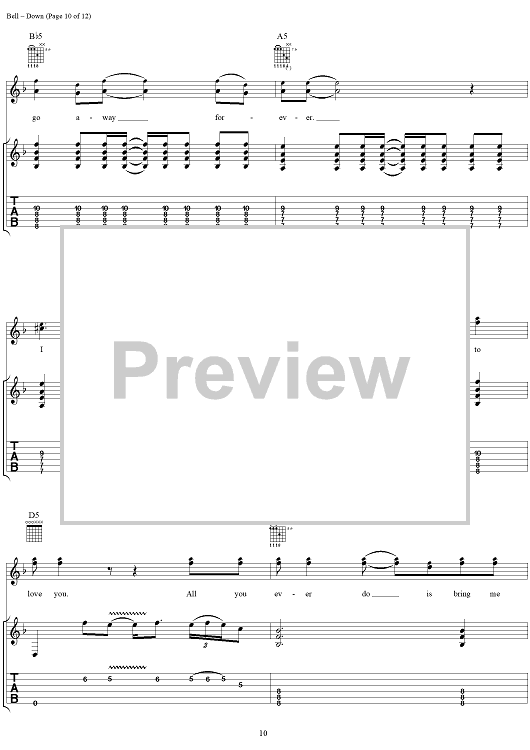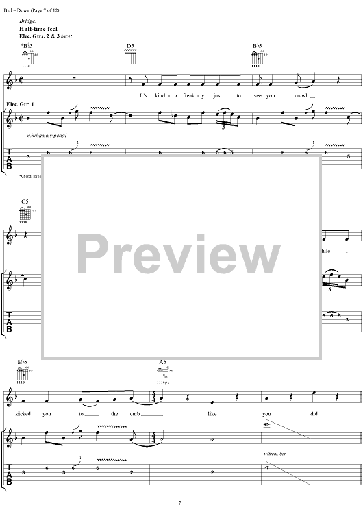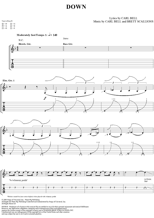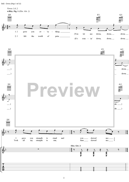 Digital Sheet Music for Down by Fuel, Carl Bell, Brett Scallions scored for Guitar Tab/Vocal; id:284164