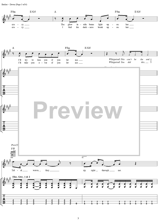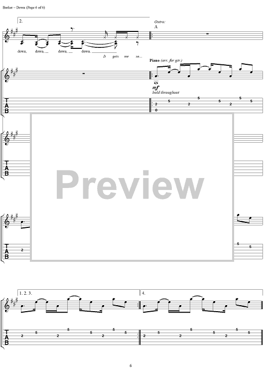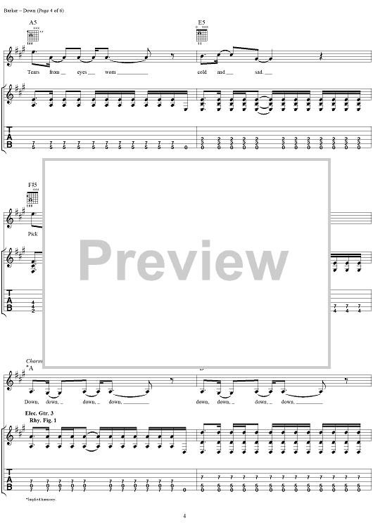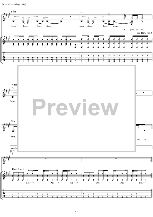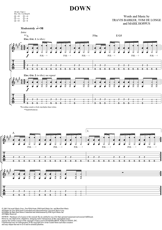 "Down" Sheet Music by blink-182