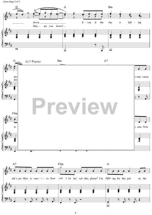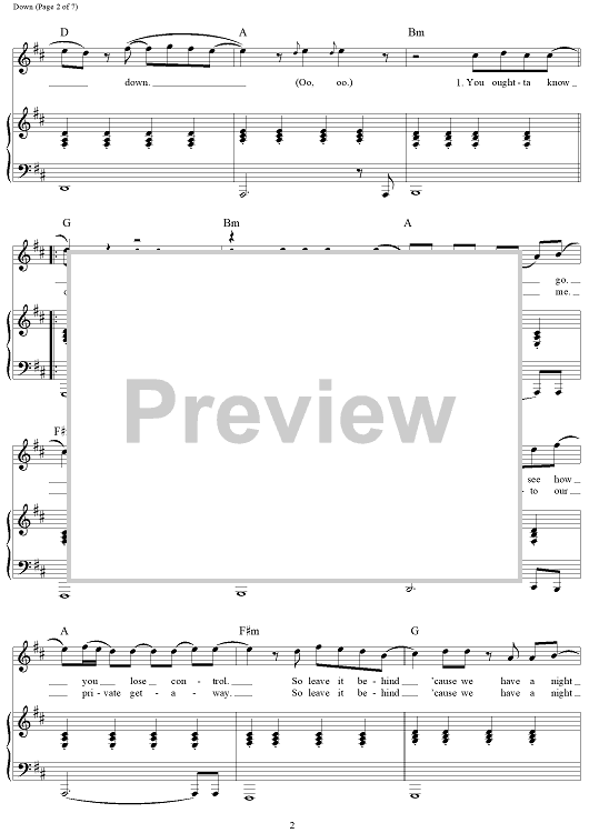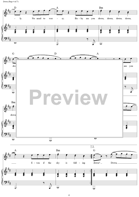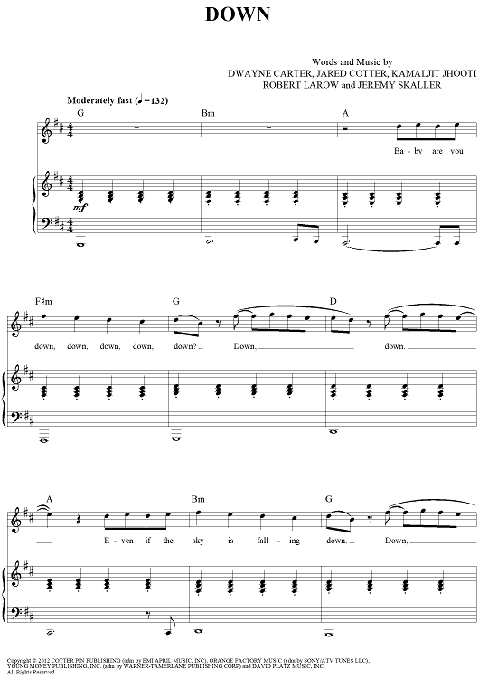 Digital Sheet Music for Down by Dwayne Carter, Jared Cotter, Jeremy Skaller, Robert Larow, Kamaljit Jhooti, Jay Sean scored for Piano/Vocal/Chords; id:461247