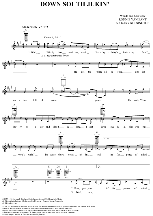 "Down South Jukin'" Sheet Music by Lynyrd Skynyrd