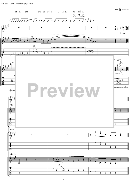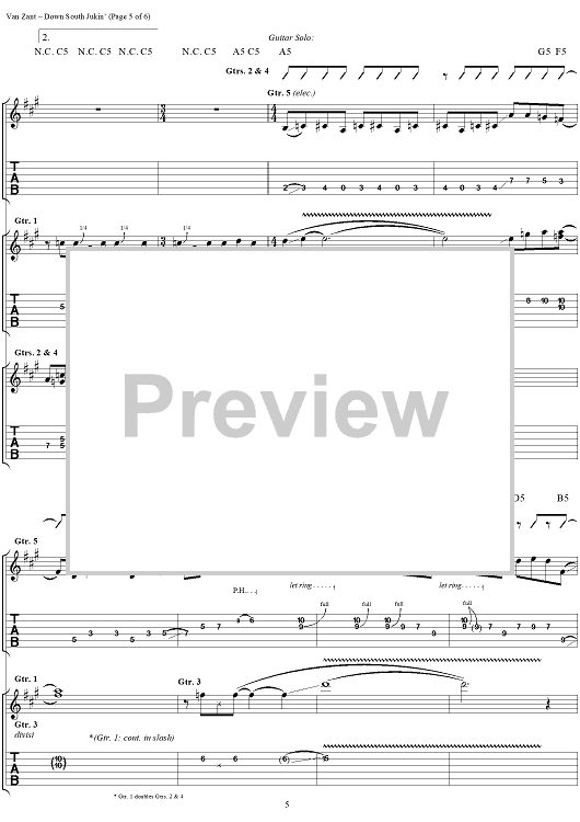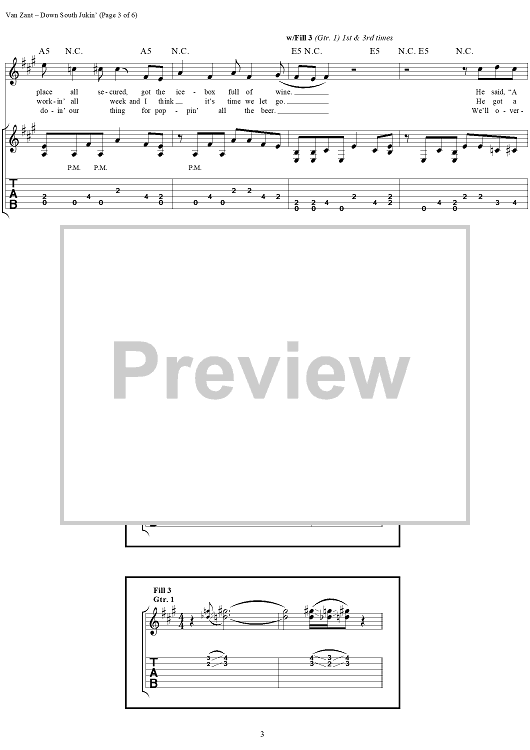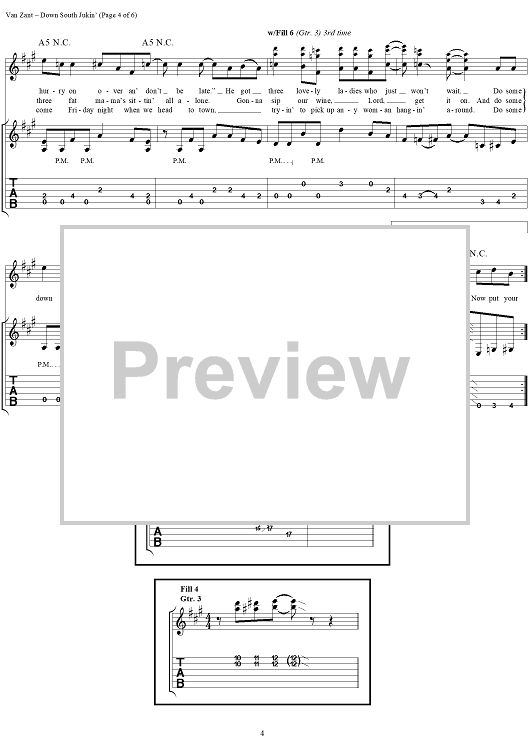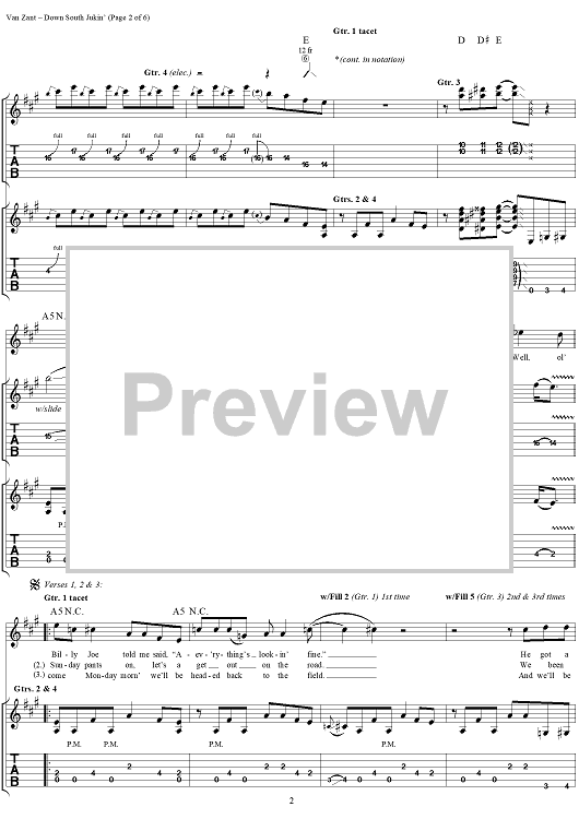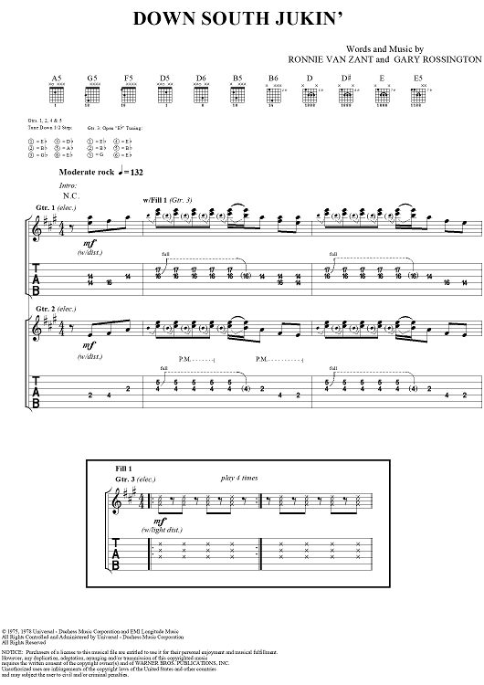 "Down South Jukin'" Sheet Music by Lynyrd Skynyrd
