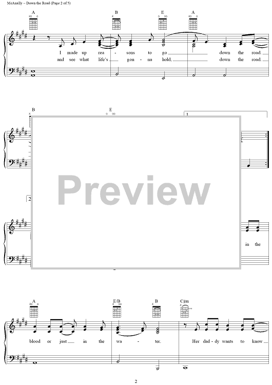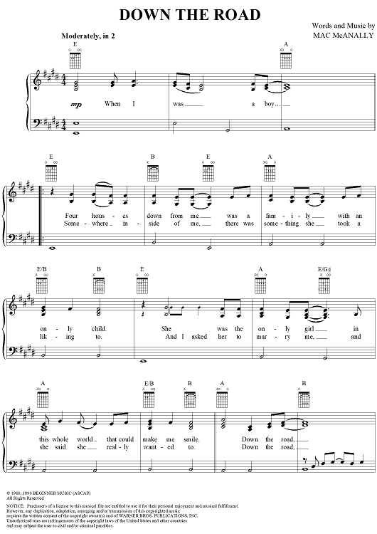 Digital Sheet Music for Down the Road by Mac McAnally scored for Piano/Vocal/Chords; id:251728
