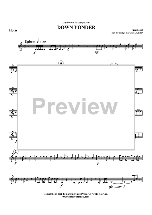 Digital Sheet Music for Down Yonder - Horn by Traditional, Robyn Flowers, Georgia Brass scored for Brass Quintet; id:356500