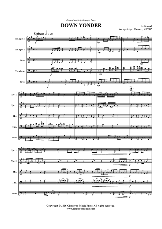 Digital Sheet Music for Down Yonder - Score by Traditional, Robyn Flowers, Georgia Brass scored for Brass Quintet; id:356497
