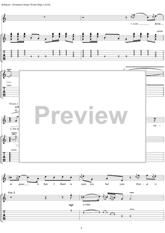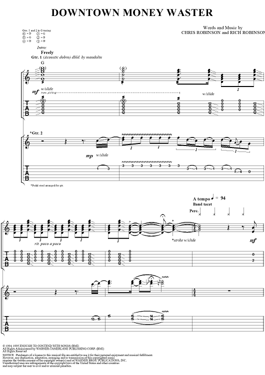 Digital Sheet Music for Downtown Money Waster by The Black Crowes, Chris Robinson, Rich Robinson scored for Guitar Tab/Vocal; id:255467