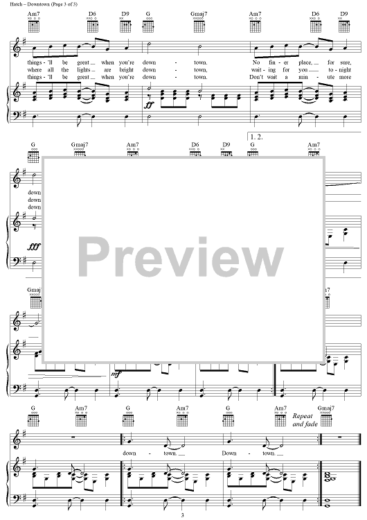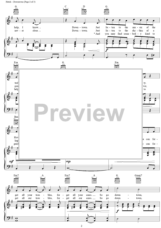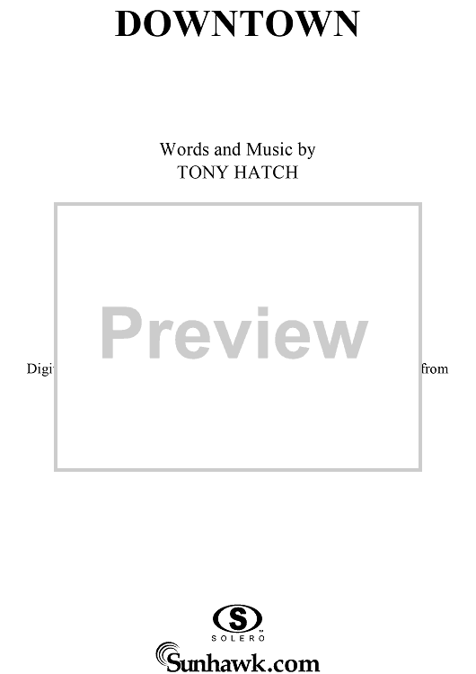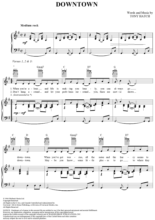 Digital Sheet Music for Downtown by Tony Hatch, Petula Clark scored for Piano/Vocal/Chords; id:287063