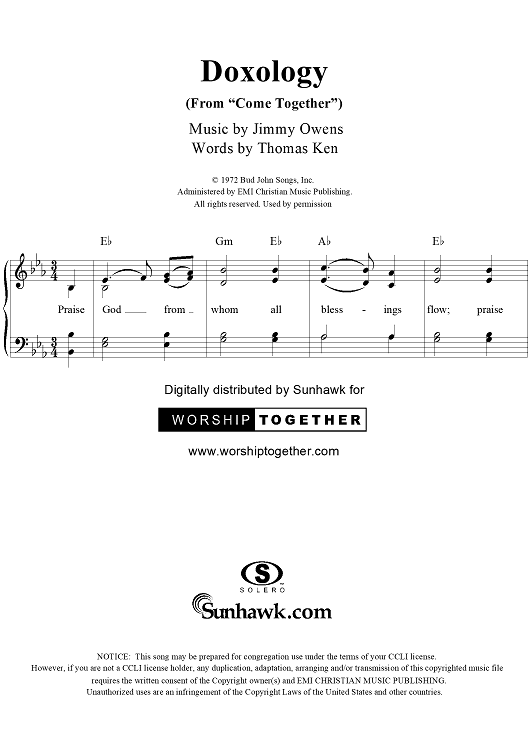 Digital Sheet Music for Doxology (from "Come Together") by Jimmy Owens, Thomas Ken, Praise and Worship scored for Piano/Vocal/Chords; id:119533