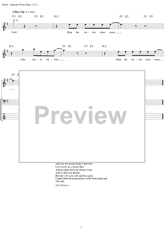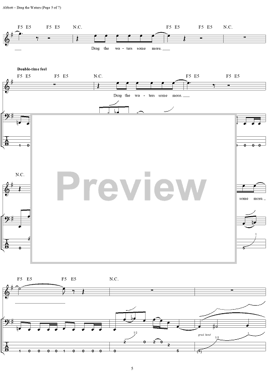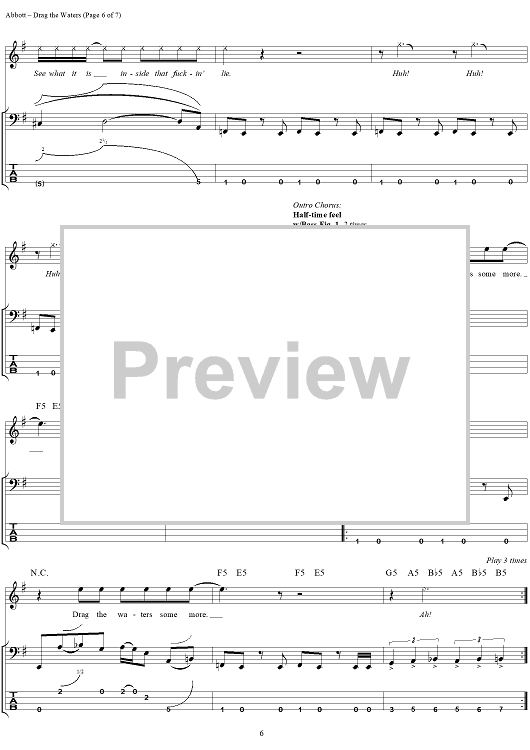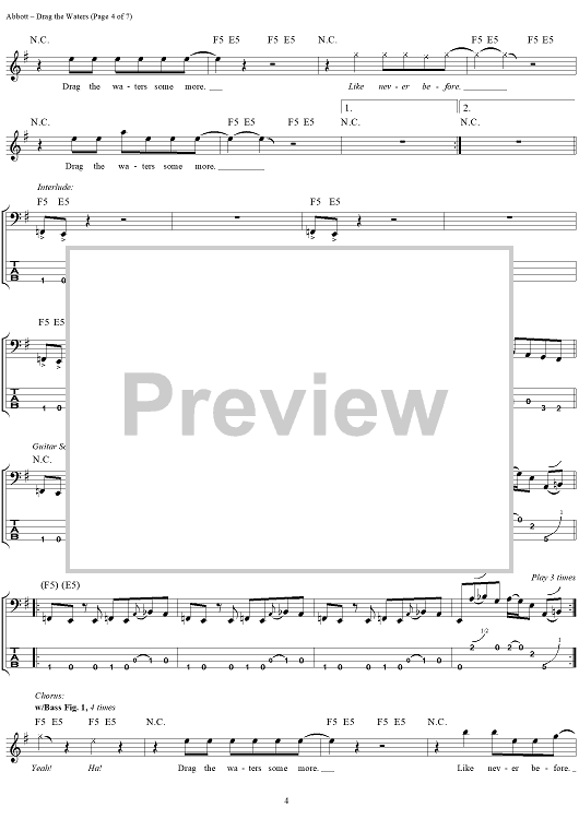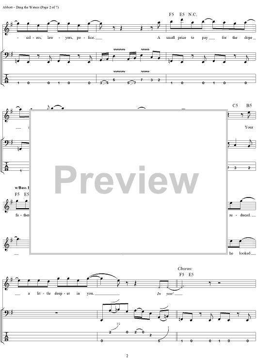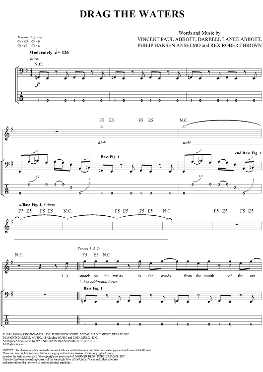 Digital Sheet Music for Drag the Waters by Rex Brown, Dimebag Darrell, Phil Anselmo, Pantera, Vinnie Paul scored for Bass Tab/Vocal; id:215686