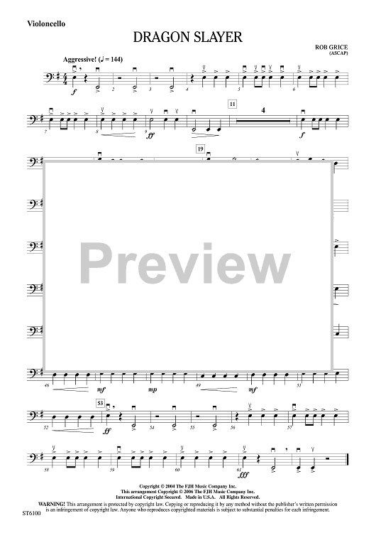 "Dragon Slayer - Violoncello" Sheet Music by Rob Grice