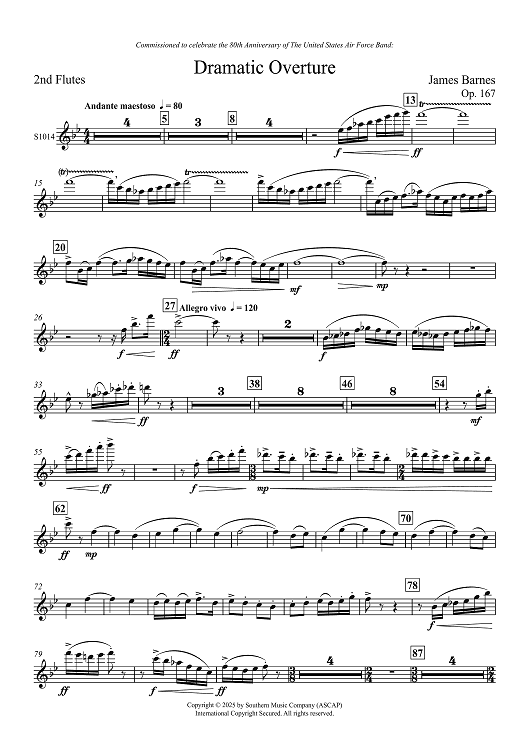 Digital Sheet Music for Dramatic Overture - 2nd Flutes by James Barnes scored for Concert Band; id:508263