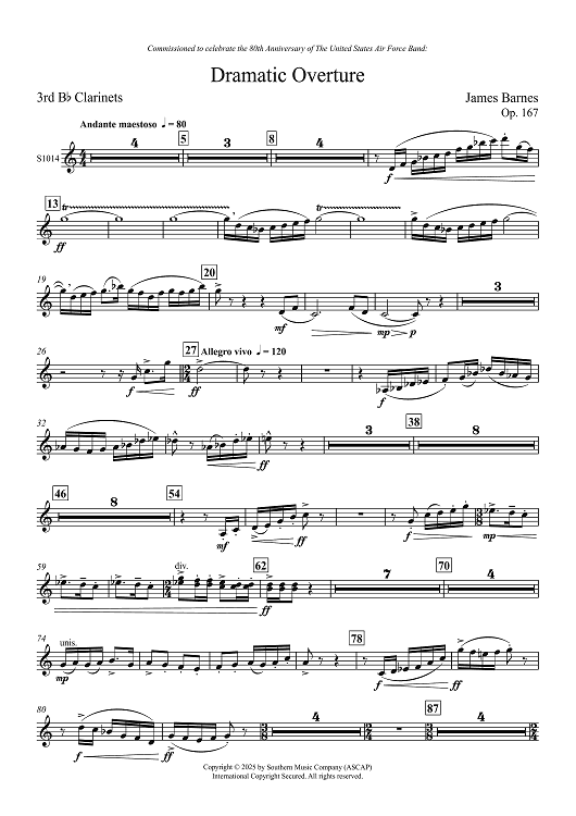 Digital Sheet Music for Dramatic Overture - 3rd Bb Clarinets by James Barnes scored for Concert Band; id:508270